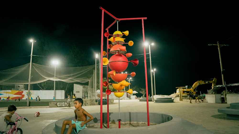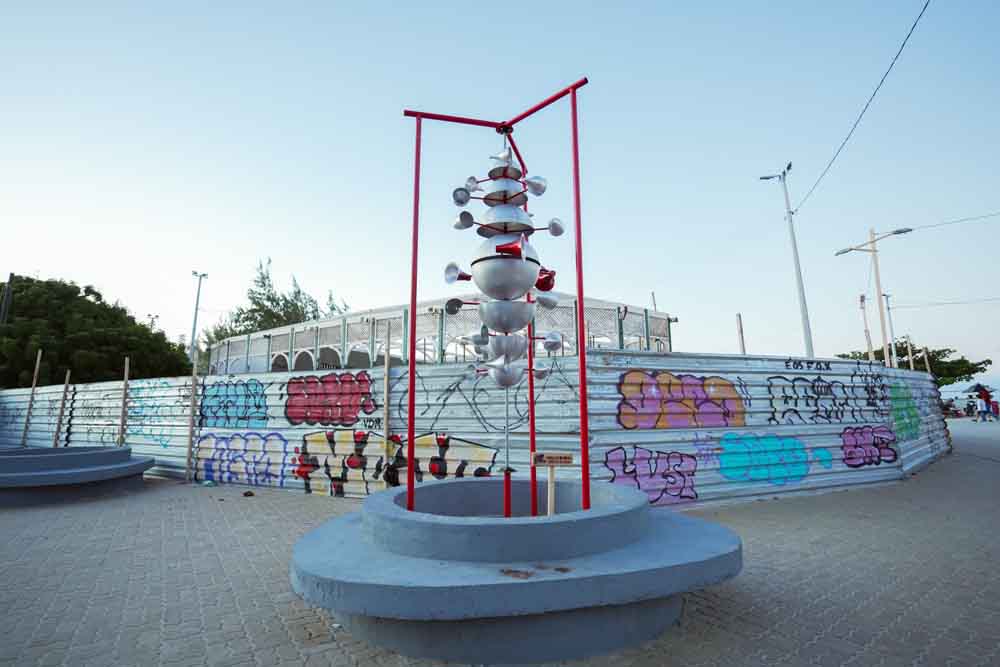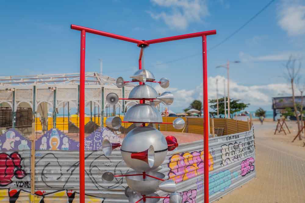 Esculturas Eólicas em alumínio e ferro instaladas no Poço da Draga/Praia de Iracema durante a edição 10 do Festival Concreto.